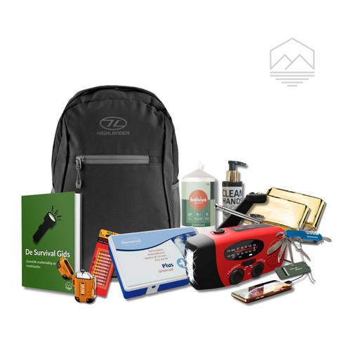 Med vores nødhjælpskit er du garanteret godt forberedt på de første 72 timer i en nødsituation. Det indeholder blandt andet en stormlighter, en nødradio og et førstehjælpskit med 48 dele.